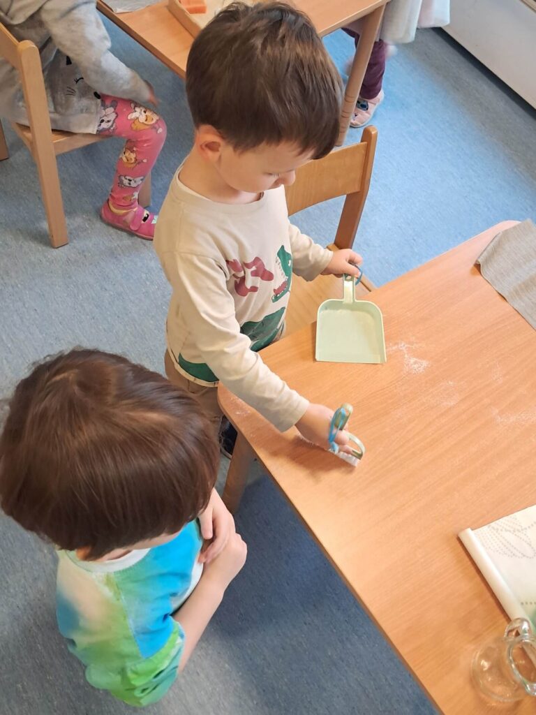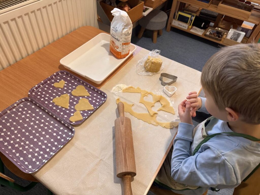 Trzylatek nie chce udawać, że gotuje – chce gotować naprawdę. Nie chce plastikowego noża – chce prawdziwego, dostosowanego do jego rąk. Materiały Montessori odpowiadają na naturalną potrzebę dziecka: „Pomóż mi zrobić to samemu!” Efekt? Podczas trzygodzinnej pracy własnej dzieci są skupione, spokojne i zadowolone – bo robią rzeczy prawdziwe i sensowne.