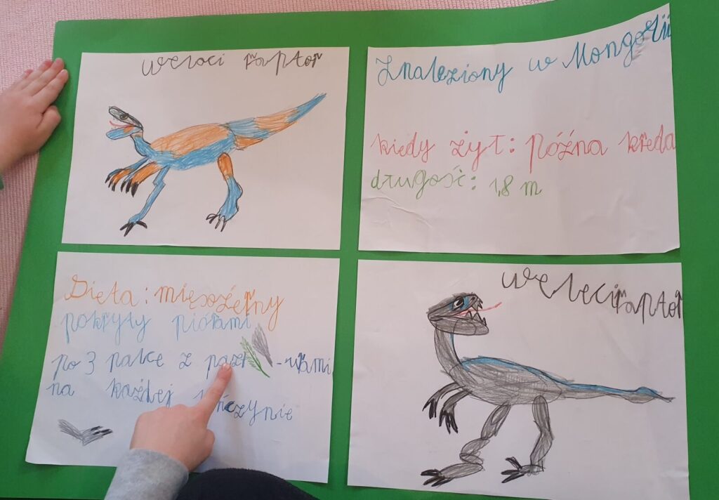 Przykład z sali: Wasz sześciolatek fascynuje się dinozaurami. Podczas pracy własnej bada ich nazwy (czytanie), liczy je (matematyka), rysuje (sztuka), porównuje rozmiary (geometria). Nauczyciel widzi, że z mnożeniem jeszcze się nie zetknął – więc podczas lekcji kluczowej wprowadza działanie na konkretnym materiale.